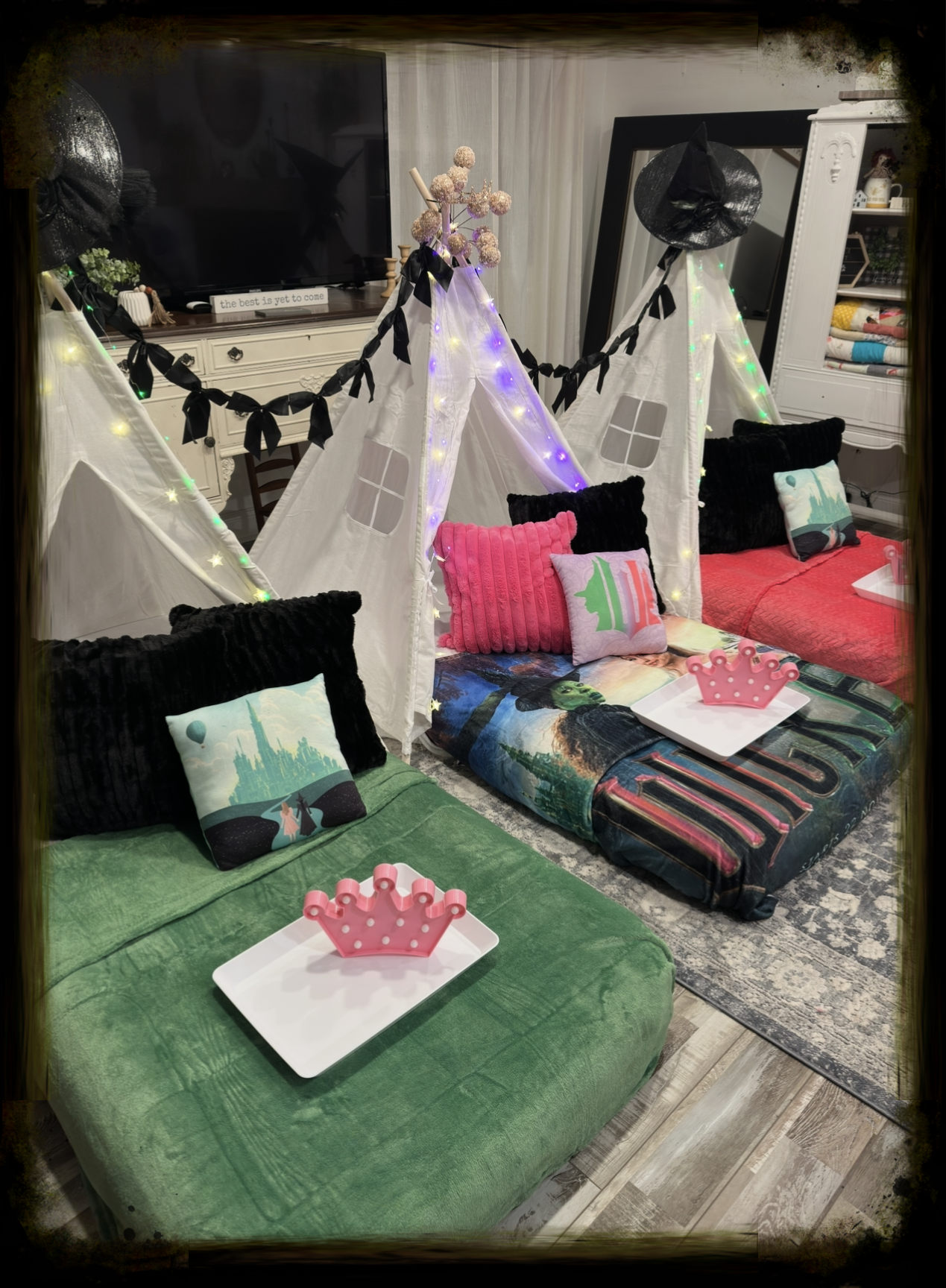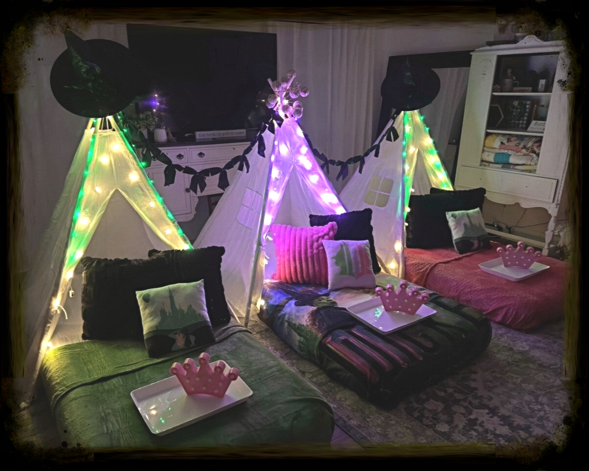Our Wicked- inspired teepee sleepover was all about friendship, fun,and a little bit of birthday magic! Cozy tents, glittery details, and memories that will last forever.