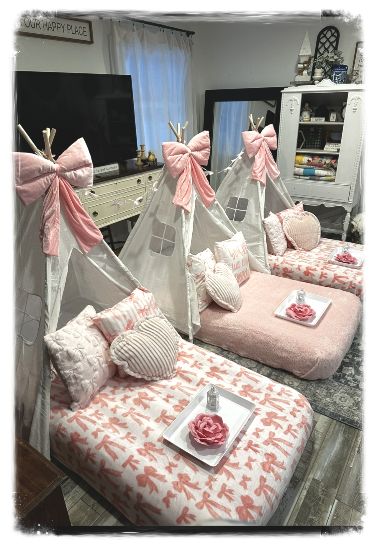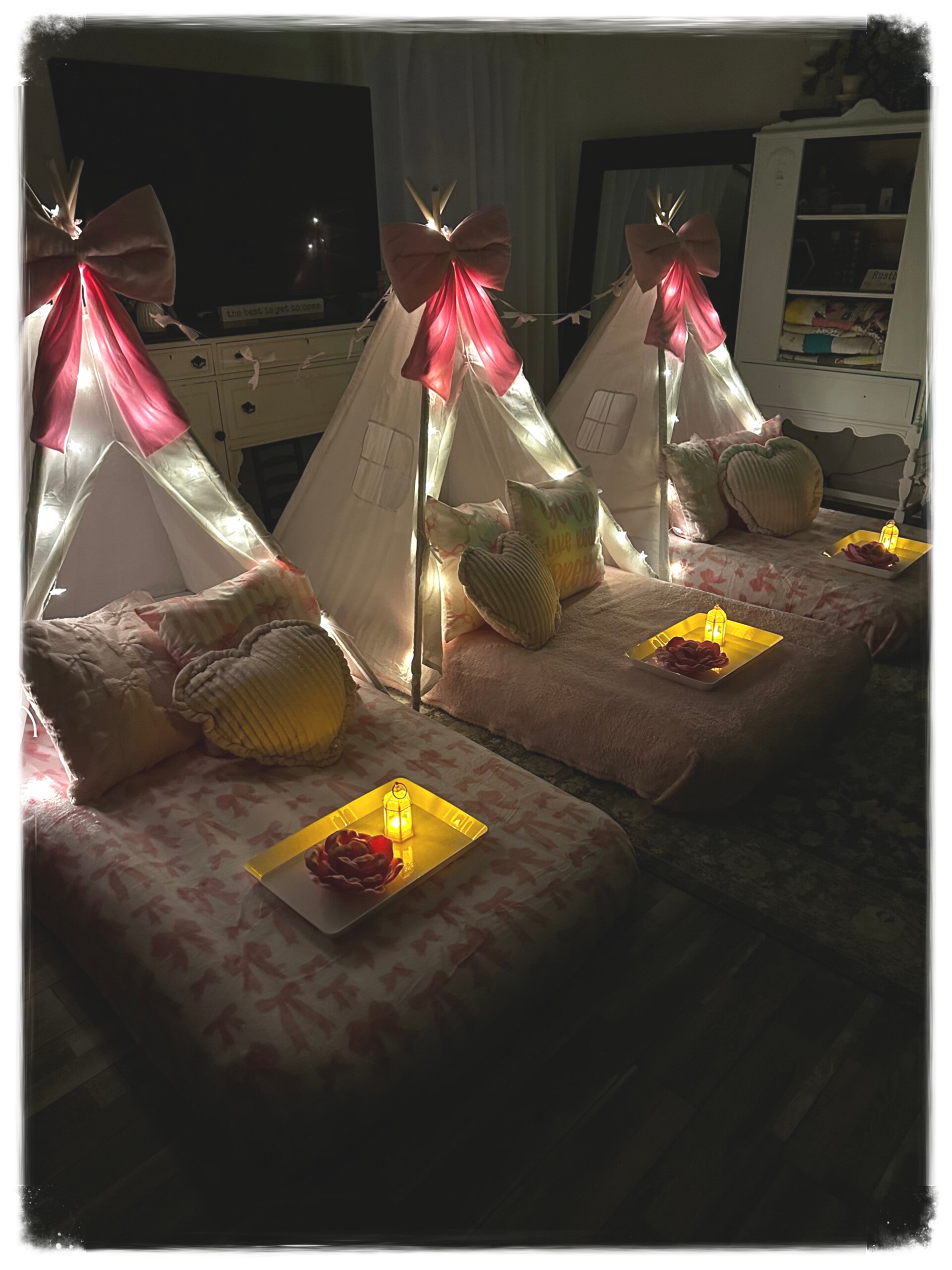 This teepee party is all things pink,, cozy,and adorable! From dainty Bow details to fluffy pillows and dreamy setups, every little guest like a princess. Because birthdays should be as sweet the birthday girl!