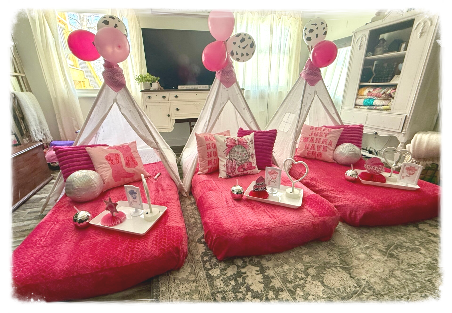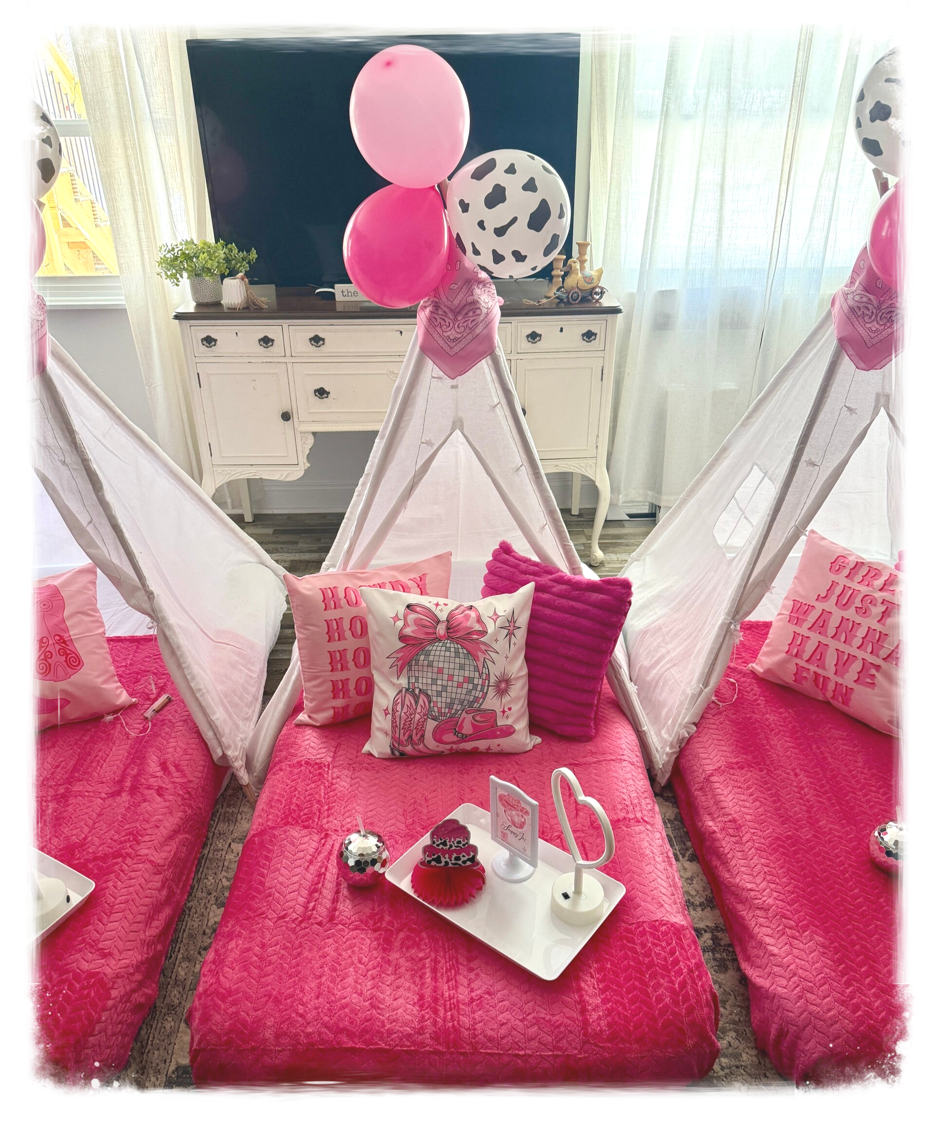 Yeehaw meets disco fever ! This Cowboy Teepee Birthday Party was boots, sparkles and birthday magic all in one! From glittery disco balls to cowgirl-chic details, every teepee was styled for the ultimate glam rodeo sleepover.