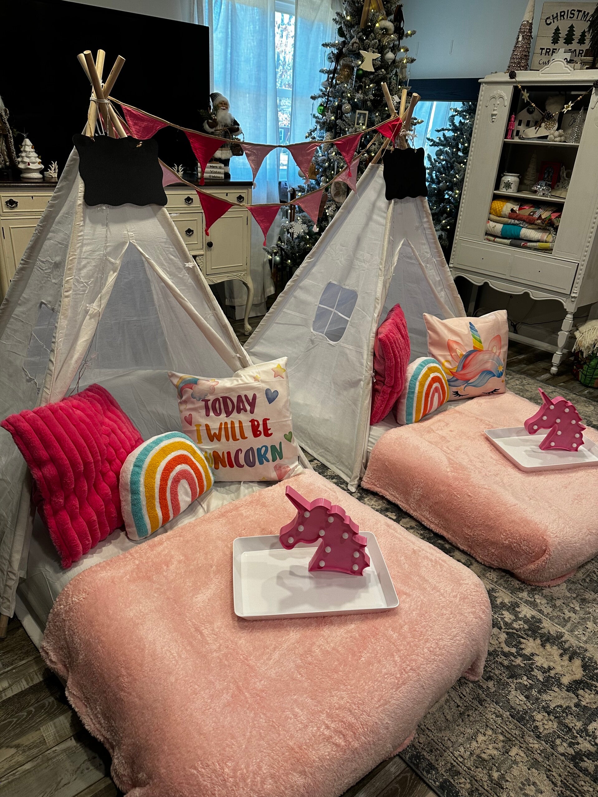 This magical sleepover brings unicorns, rainbows, and twinkling lights to life. With plush cushions, and enchanting night lights, it’s a fairytale dream come true!